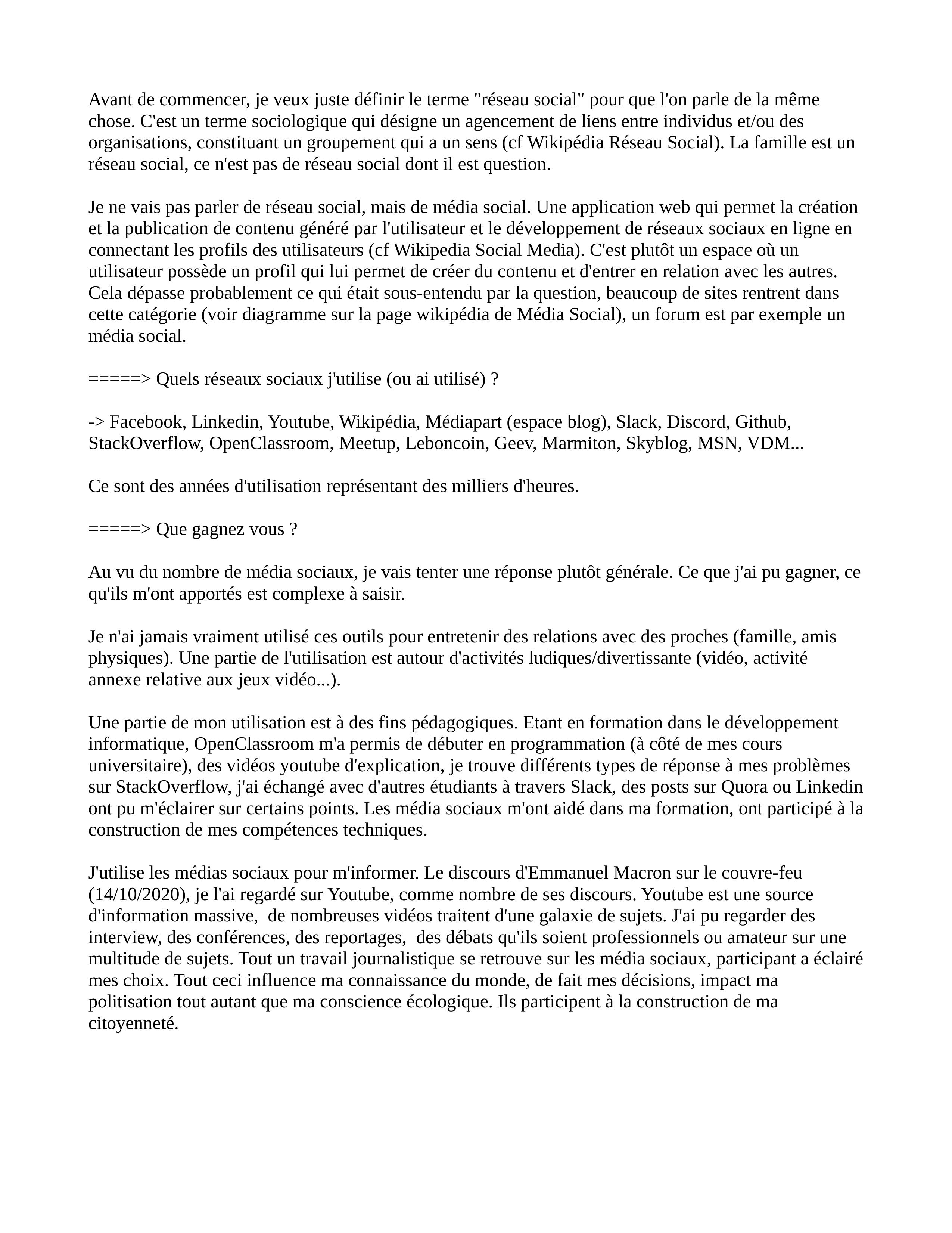 Je vous partage un écrit que j'ai fait il y a un petit moment sur la question de ce que les réseaux sociaux pouvaient apporter. On parle beaucoup des dangers des réseaux sociaux, mais ils peuvent aussi être des outils qui jouent un rôle dans notre éducation, je ne peux que le constater sur moi.